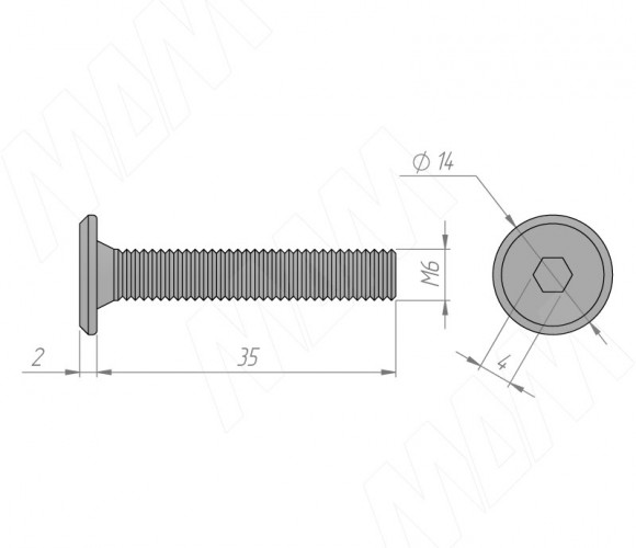 Винт М6х35 с плоской головкой под шестигранник HXS M6x35 FL