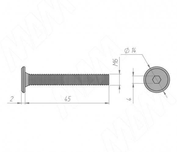 Винт М6х45 с плоской головкой под шестигранник HXS M6x45 FL