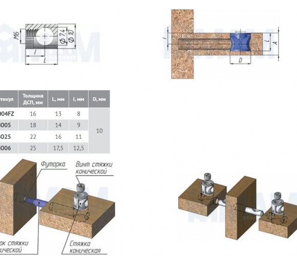 Стяжка коническая D10 для плит толщиной от 16мм. BO04FZ