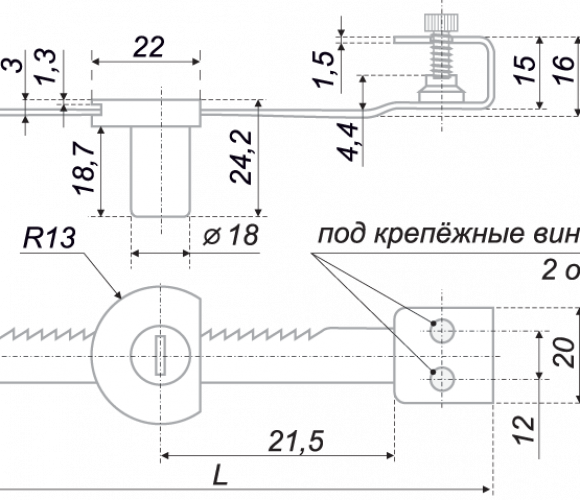 Замок реечный L=140мм для раздвиж.стекл. дверей хр.полир. Z518CP.3/140