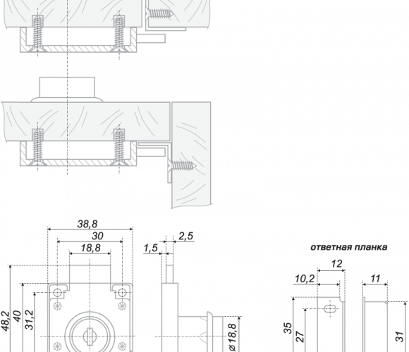 Замок Z148GP для ДСП, золото полированное Z148GP.1/22