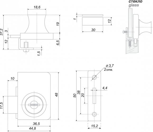 Замок Z258GPдля стеклянных дверей, золото полированное Z258GP.2/18