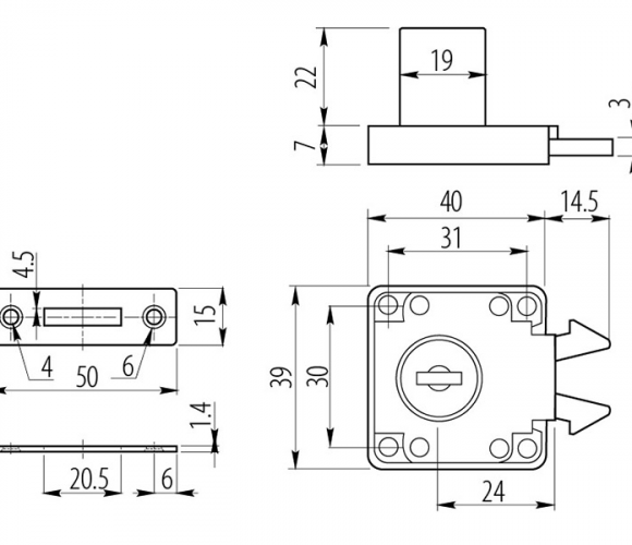 Замок для шкафов-купе №202, d19х22, с ответной планкой, хром (112561)