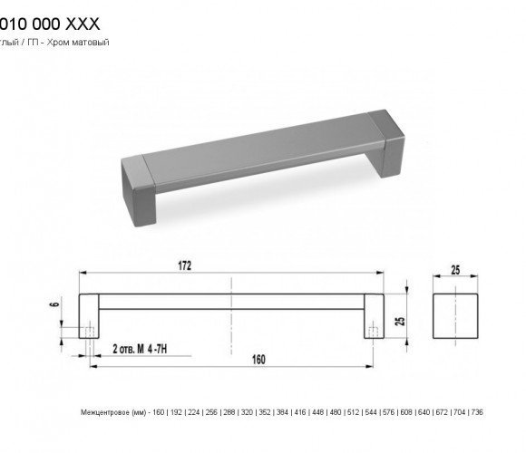 Ручка - рейлинг RL (06) 10.00.352 St светлый/St светлый
