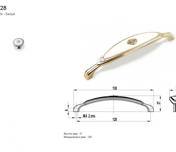 Ручка - скоба FS 138128 Золото глянец/белый (ТЗ)