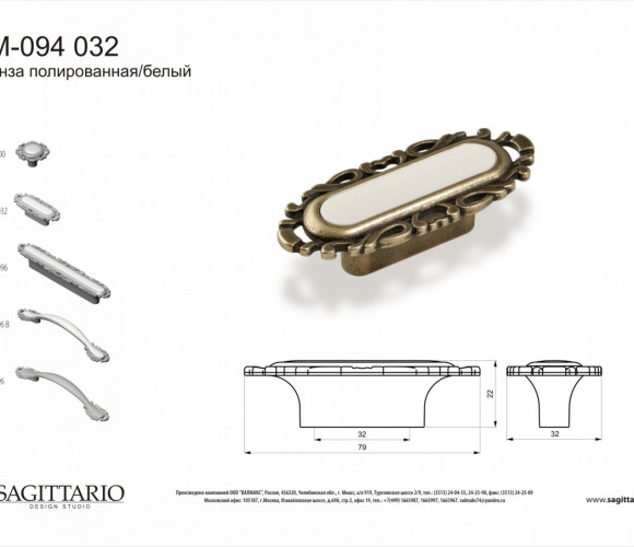 Ручка - модель FM 094032 Бронза полированная/белый (TS) (30 шт.)