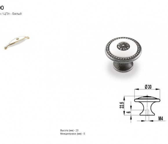 Ручка - грибок FB 027000 Старое олово/белый (ТЗ)