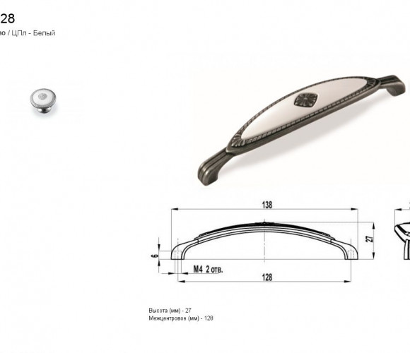 Ручка - скоба FS 138128 Старое олово/белый (ТЗ)