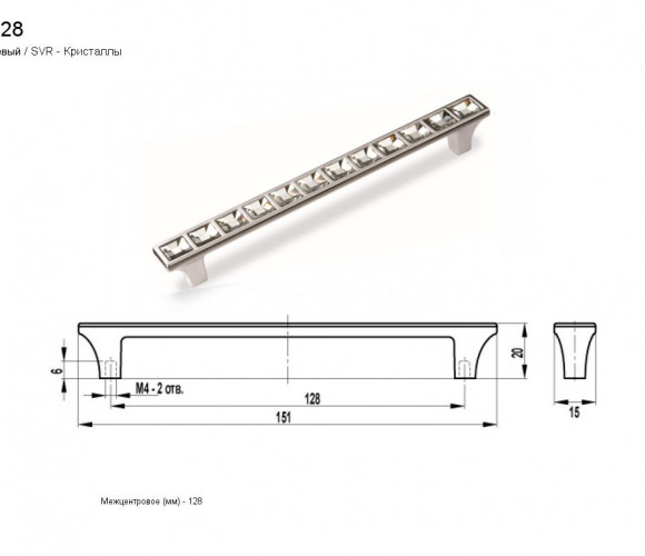 Ручка - скоба FS 159128 Хром глянец/кристаллы