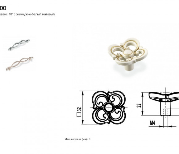 Ручка - грибок FB 058000 Золото прованс/1013 жемчужно-белый матовый