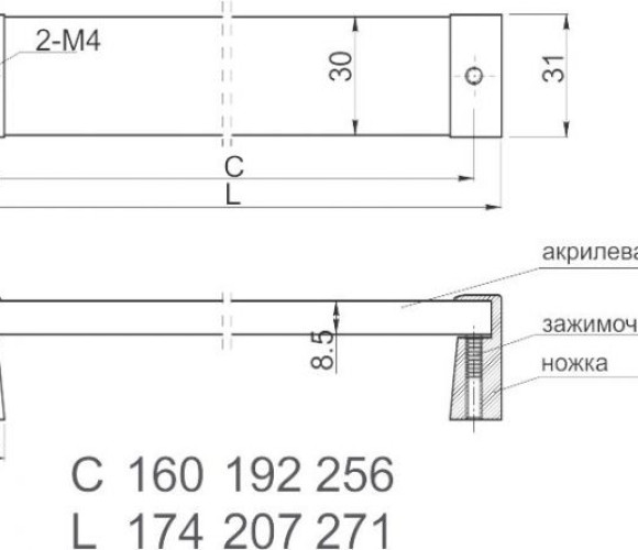 Ручка акриловая прозрачная OLIVA UZ-O192PR, хром ******