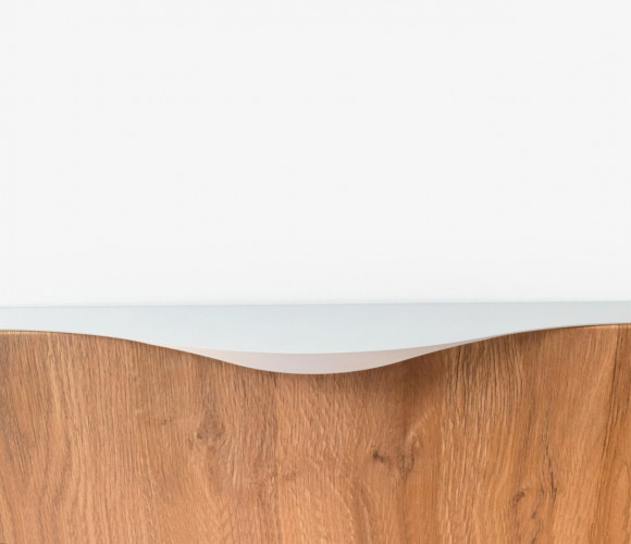 Ручку можно установить двумя способами — «в размер» фасада или по центру как большой «язычок» — оба варианта допустимы с точки зрения дизайна и эргономики.