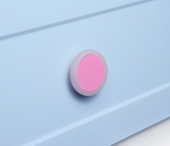 LOLLIPOP RC600 — детская ручка-кнопка из прочной и безопасной для ребёнка конструкции: модель имеет основу для крепления из цинк-алюминия, на которую надевается мягкая насадка из пищевого силикона. Металлическая резьба основы не деформируется при сильной затяжке, что гарантирует прочное и устойчивое соединение ручки с поверхностью фасада. Изделие в виде круга обрамлено полупрозрачными вставками, обеспечивая надёжный эргономичный хват даже детскими пальчиками.