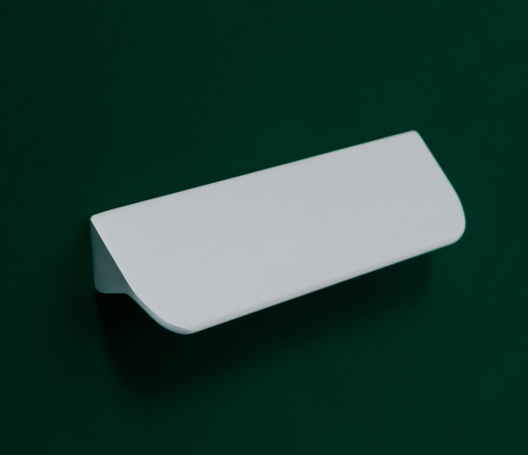 Форма модели позволяет расположить её в край или по центру фасада, креплением горизонтально, а также вертикально у левого и правого торца фасада. Конструкция ручки с острыми краями плотно прижимается к поверхности фасада, создавая эффект естественного продолжения.