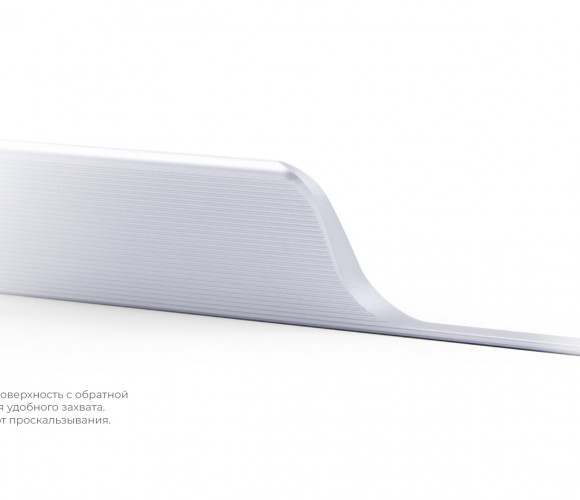 Конструкция ручки имеет детально проработанный выступ по всей длине, что создаёт эффект погружения фасада, аккуратно закрывая его края. Рифлёное покрытие в зоне захвата обеспечит эргономичное использование ручки без соскальзывания.