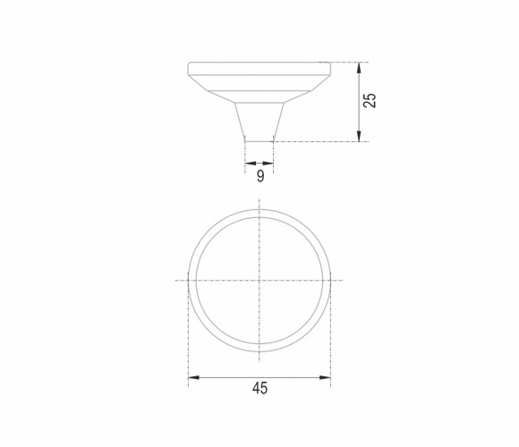 Ручка для мебели и дизайна диаметром 45 мм может использоваться самостоятельно на фасадах любой ширины.