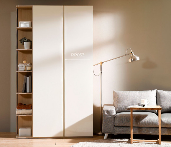 RP053 устанавливается по центру между двумя вертикальными распашными фасадами, обеспечивая доступ к обоим одновременно. Модель станет отличным решением для минималистичных гарнитуров для кухонь, спален, гостиных и прихожих.