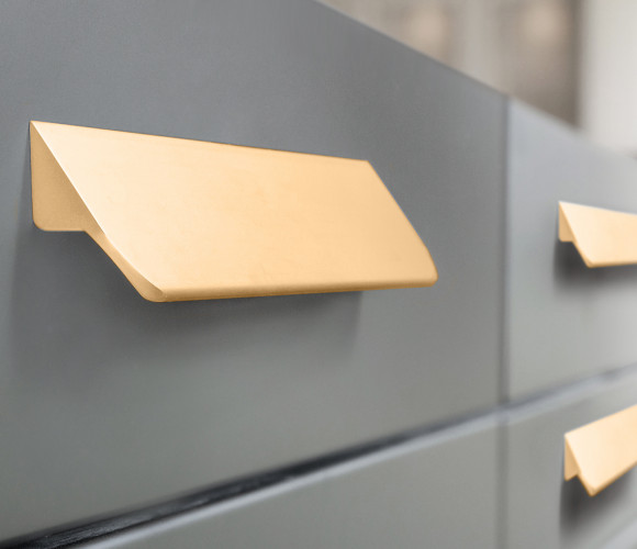 Форма модели позволяет расположить её в край или по центру фасада, креплением горизонтально, а также вертикально у левого и правого торца фасада. Конструкция ручки с острыми краями плотно прижимается к поверхности фасада, создавая эффект естественного продолжения.