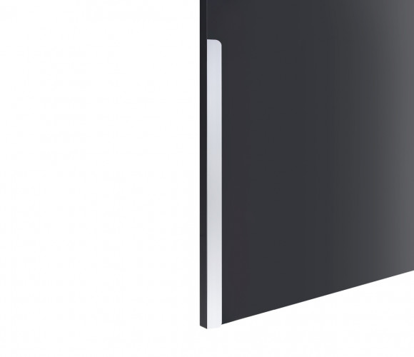 Форма модели позволяет расположить её в край или по центру фасада, креплением горизонтально, а также вертикально у левого и правого торца фасада. Конструкция ручки с острыми краями плотно прижимается к поверхности фасада, создавая эффект естественного продолжения.