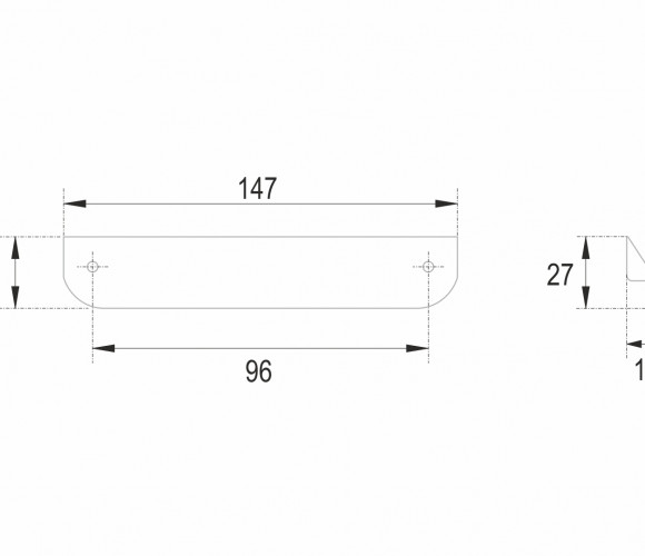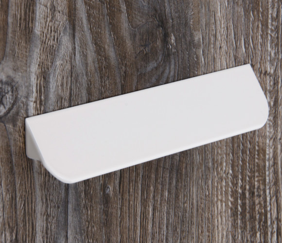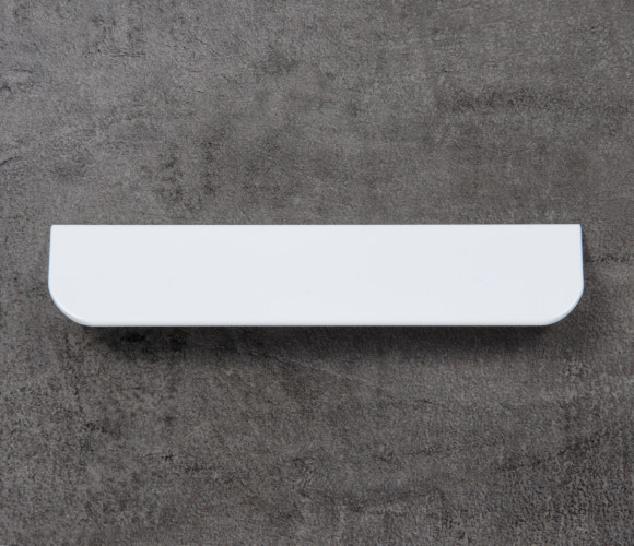 Форма модели позволяет расположить её в край или по центру фасада, креплением горизонтально, а также вертикально у левого и правого торца фасада. Конструкция ручки с острыми краями плотно прижимается к поверхности фасада, создавая эффект естественного продолжения.