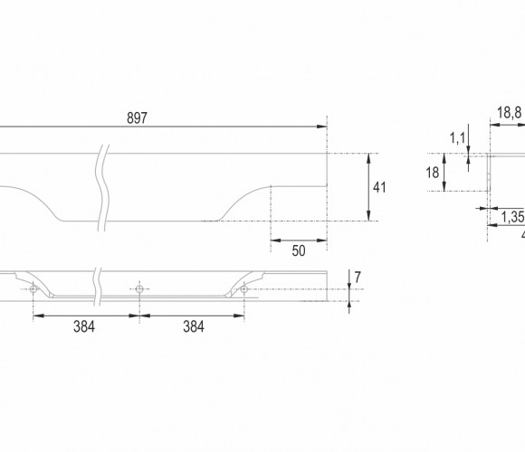 WING RT114 допускает размещение двумя способами — «в размер» фасада (актуально для размеров 500-900 мм) и по центру широких фасадов, как большой «язычок» (для размеров 150 мм, 200-400 мм, 450 мм).