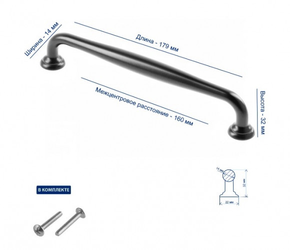 Ручка STILO 160 мм, черный матовый - изящный образец лицевой фурнитуры, презентабельная ручка-скоба, подходящая для многих интерьерных стилей.