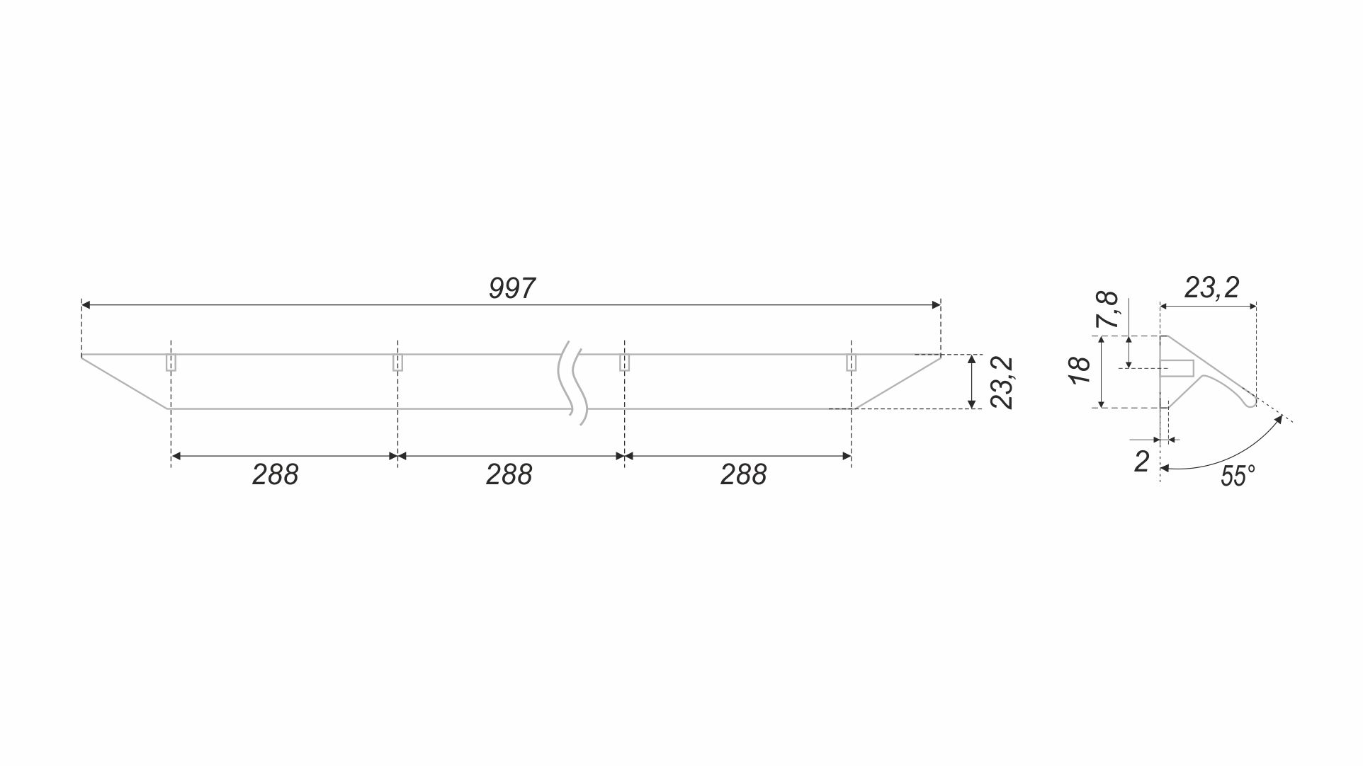 По своей форме и дизайну RICK RS157 напоминает популярные торцевые решения, но при этом RICK обладает техническими особенностями, преимуществами ручек-скоб и может быть установлена на те фасады, которые исключают возможность применения торцевых ручек.