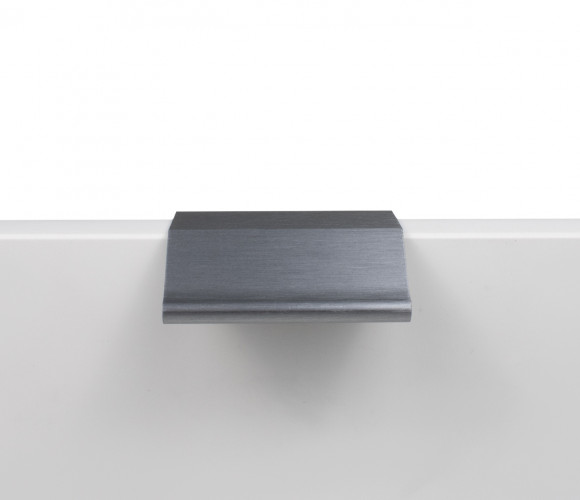 METRICA RT112 — торцевая ручка из алюминия, с геометричным выступом и рифлением в зоне захвата для эргономичного использования. Устанавливается наложением, подходит для фасадов толщиной от 16 мм до 20 мм.