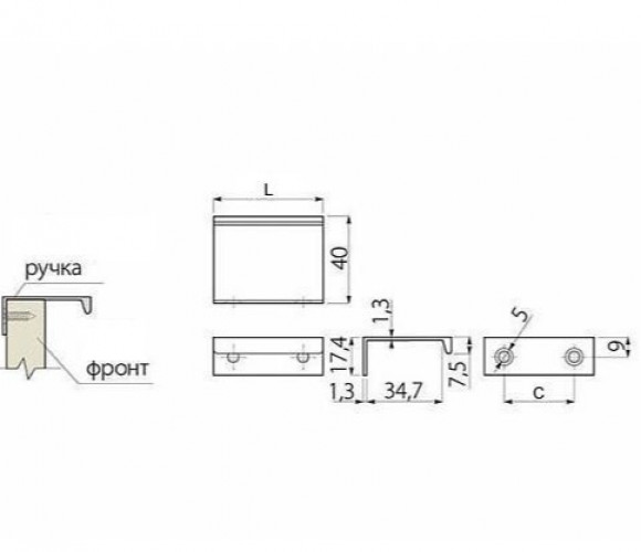 Ручка мебельная алюминиевая HEXI 192 мм/225 мм, черный матовый - популярный вариант лицевой фурнитуры, для которого характерна простота конструкции и высокая надежность. При установке ручка накладывается на торец фасада.