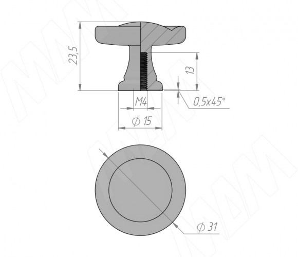 Ручка-кнопка D31мм латунь WPO.841.031.006C