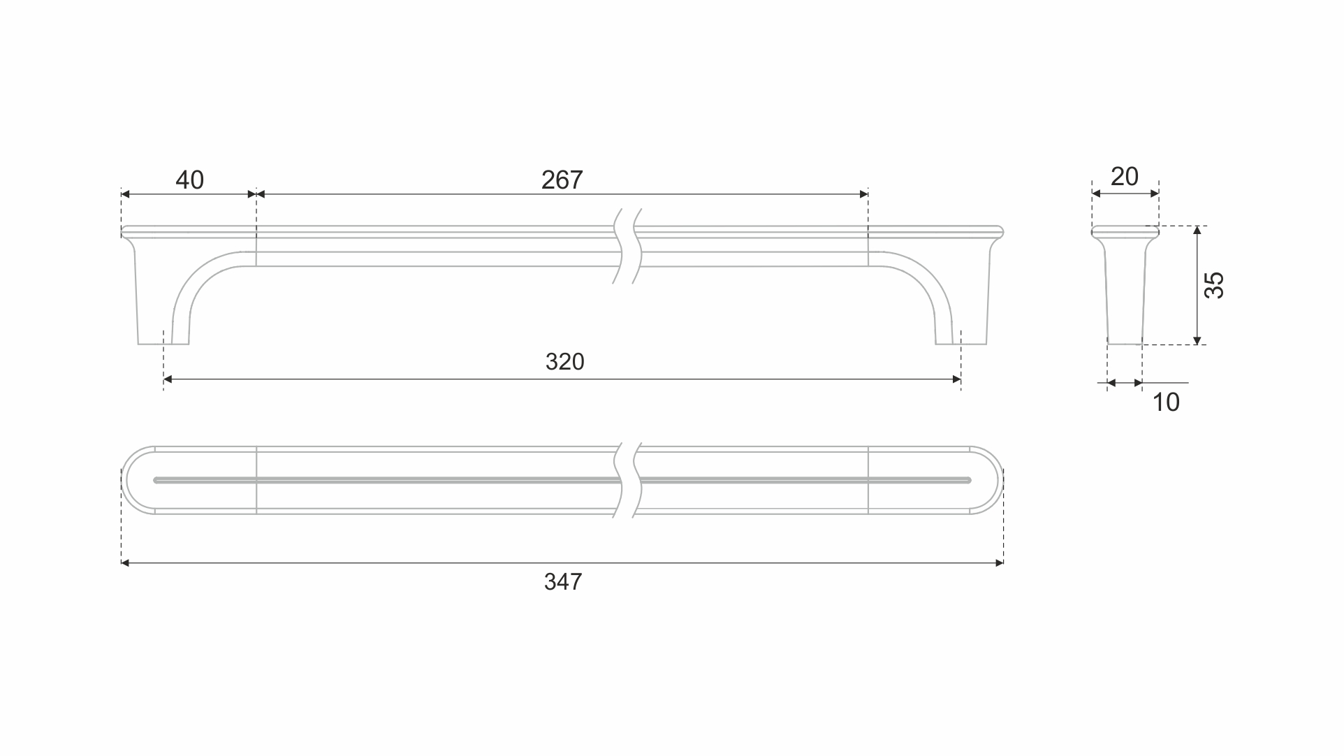 Ручка выполнена в размерах 320 мм, 480 мм и 960 мм. «Метровая» версия CREATICA разработана специально для вертикального размещения на габаритных фасадах. Скобы с МЦ 320 мм и 480 мм могут быть установлены как вертикально на высоких шкафах, так и горизонтально – на широких модулях.