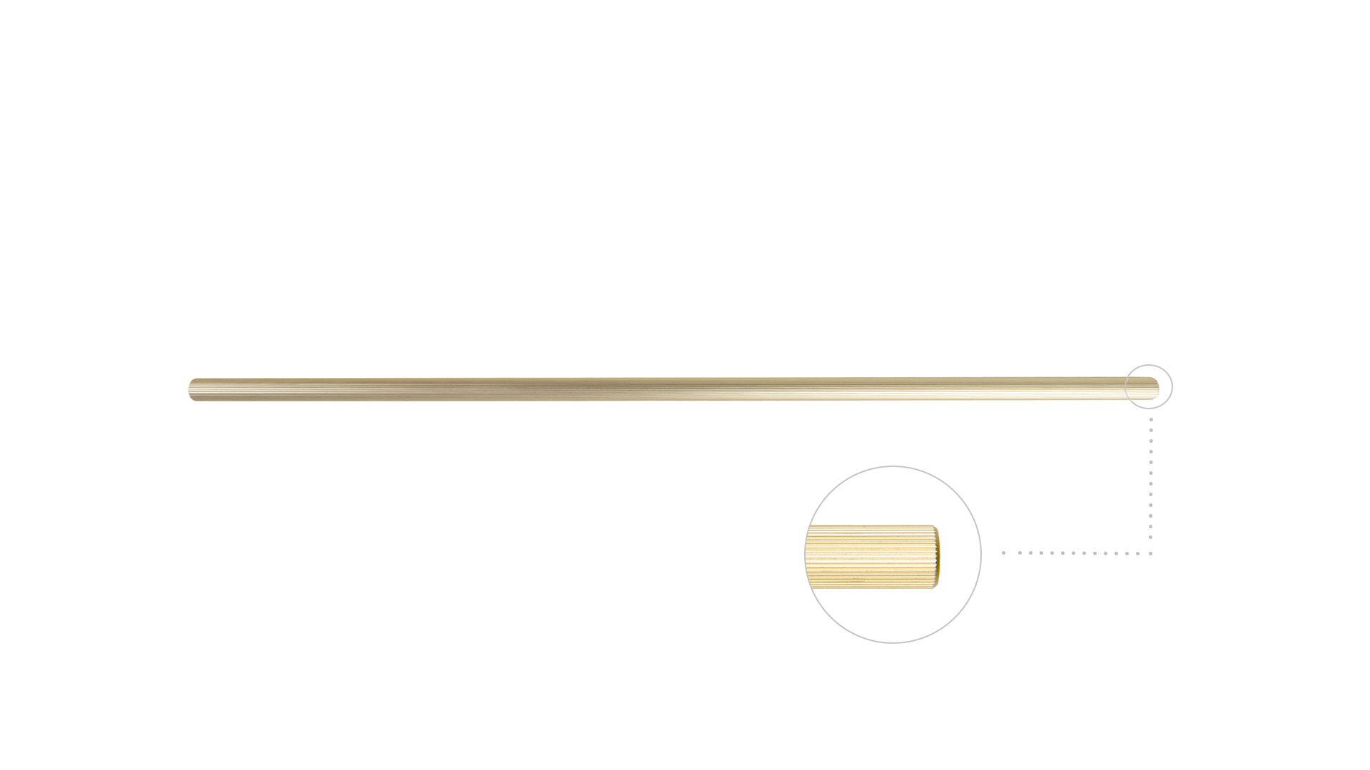 LINE PR003 — пруток с элегантным продольным рифлением для создания кастомных ручек CUSTOMIZE. Комбинируя его с держателями той же серии, можно собрать множество вариантов авторских моделей под свой мебельный проект.