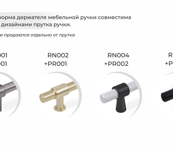 Прутки поставляются без крепежа и без держателей. Держатели для прутка мебельной ручки подбираются производителем мебели самостоятельно и предлагаются в комплекте с крепежом. Пруток не может быть прикреплен к фасаду без использования держателей-ножек.