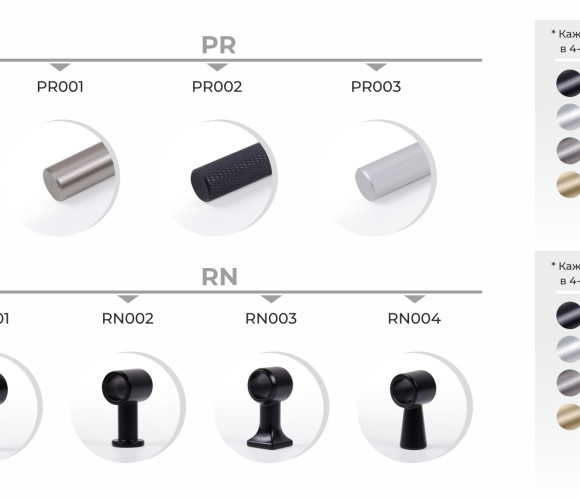 CUSTOMIZE – это серия кастомных ручек, которые клиент создает сам под свой авторский мебельный проект. 4 дизайна держателя мебельной ручки, 3 дизайна прутка, множество длин, трендовые оттенки – всё это открывает огромный простор для стильных творческих экспериментов.