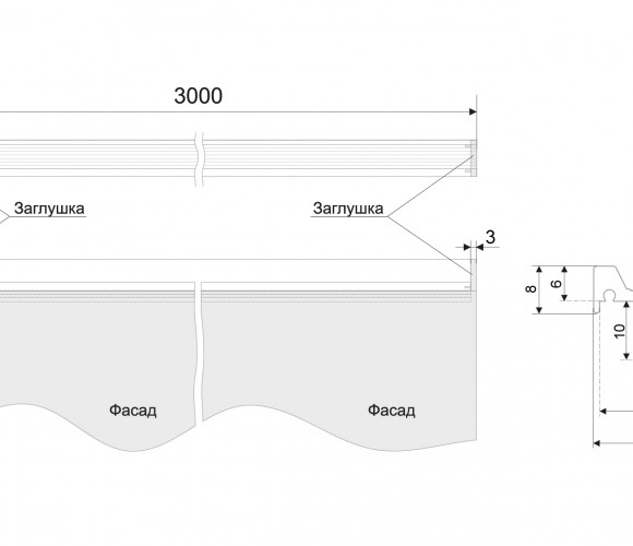 Преимущество модели состоит в том, что она идёт чётко в размер фасада. Пользователь может захватить и открыть фасад в любой его точке. А благодаря возможности установить заглушки — профиль станет не только безопасным в использовании, но и будет выглядеть завершённо и лаконично.