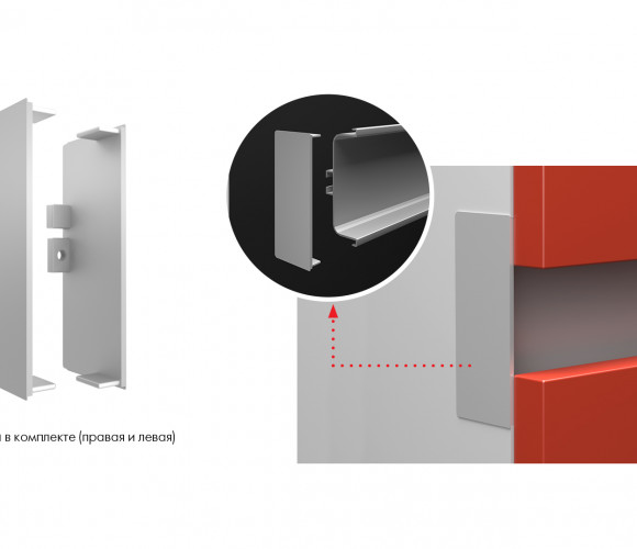 В комплект входит: левая и правая заглушки, 2 винта для крепления заглушки к профилю, ключ-шестигранник для фиксации винтов.
