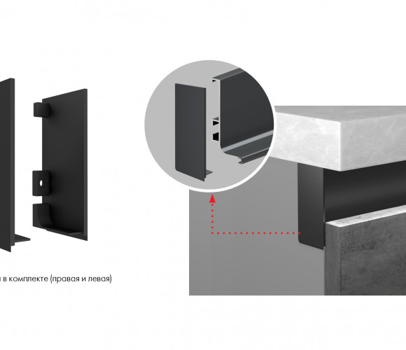 В комплект входит: левая и правая заглушки, 2 винта для крепления заглушки к профилю, ключ-шестигранник для фиксации винтов.