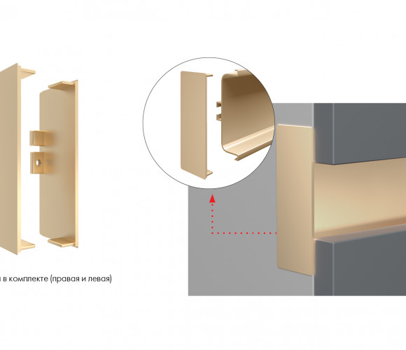 В комплект входит: левая и правая заглушки, 2 винта для крепления заглушки к профилю, ключ-шестигранник для фиксации винтов.