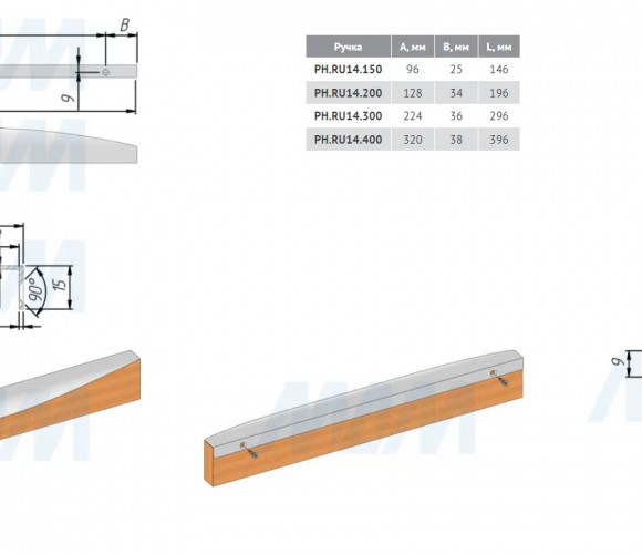 Профиль-ручка крепление саморезами черный матовый 296мм (анод) PH.RU14.300.BL