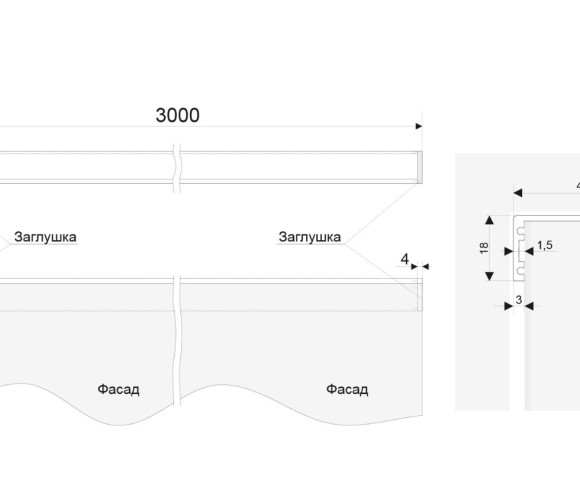 Для того чтобы профильная ручка совместно с заглушками не выходила за плоскость фасада справа и слева необходимо при расчёте длины ручки учесть место под заглушки — 4 мм с каждой стороны. В противном случае заглушки будут выступать с обеих сторон от кромки фасада на 4 мм.