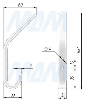 Крючок двухрожковый хром матовый HK.02.CRM