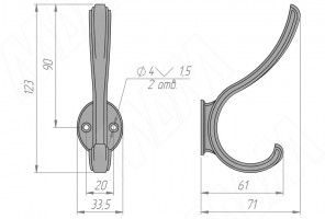 Крючок двухрожковый ZAMPA бронза состаренная HK.29. ABV