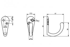 Крючок мебельный MALAGA A0, хром матовый, большой WA-MALAG-A0-05