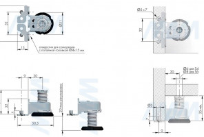 40438 РЕГУЛИРУЕМАЯ ОПОРА ДЛЯ ШКАФОВ, ВЫСОТА 60-80 ММ, КРЕПЛЕНИЕ НА БОКОВИНУ, ПЛАСТИК/СТАЛЬ