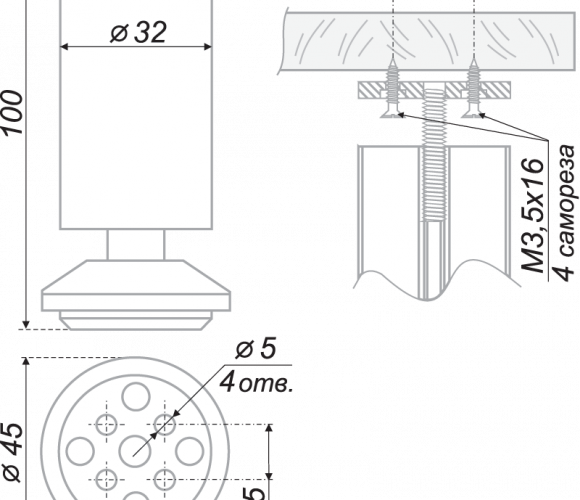Опора цокольная 32x100 хр.полирхр.полир.N301CP/CP.1