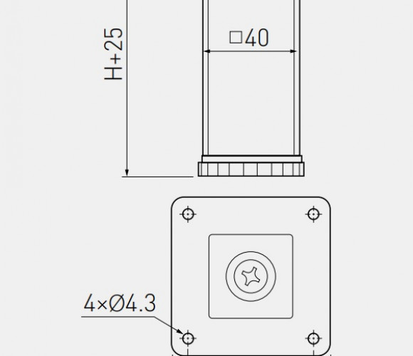 Ножка квадратная 40х40, хром, 100мм с регулировкой NM-SQ40ADJ-100