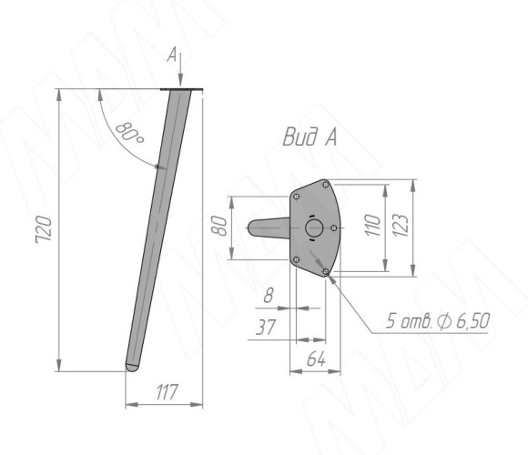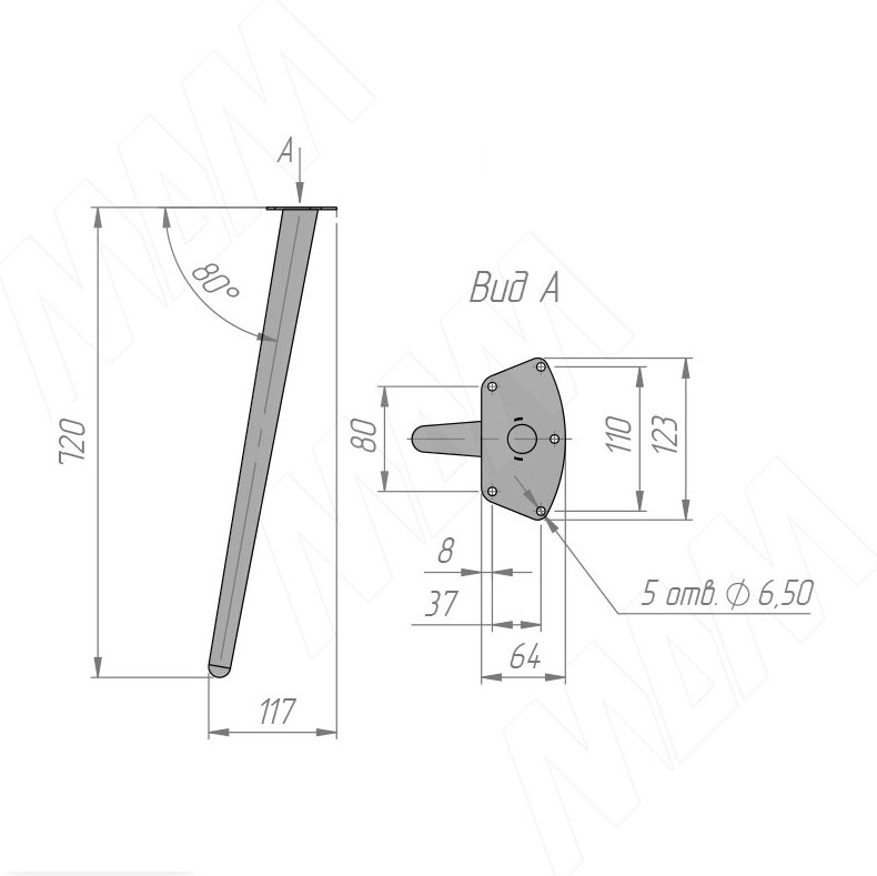 Опора для стола 123х720мм CONEконусная, белый матовый CON123x720 WT