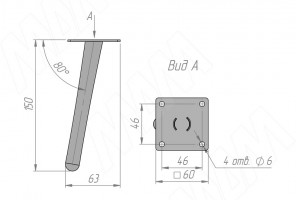 Опора для стола квадратная 710х60х60мм регулир. ЧЕРНАЯ NM-60R710-20