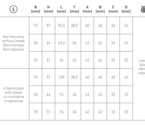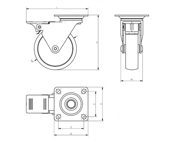 Опора колесная с фланцем, CALIBRO, D50мм с тормозом, черное KM-CALIBRO-50мм-ZH-20