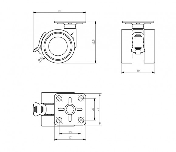 Опора колесная с фланцем, CIRCO, D50мм с тормозом, серое KM-CIRCO-50мм-ZH-19